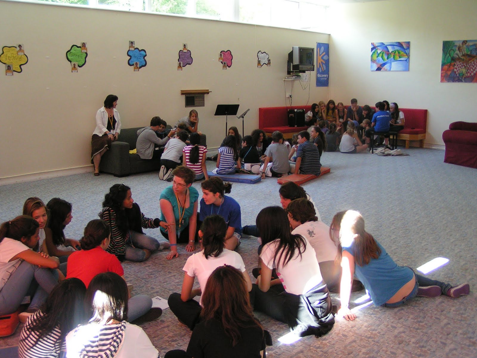 A bit of conversation in the afternoon.... Posted by Woldingham on July 09, 2010 Get link Facebook X Pinterest Email Other Apps Before dinner the kids took part in the conversation club - talked with the students host and shared the impressions from the ice ring.Lydia and Monika enchanted by the students' stories.Kim helping Bradley with the students. Comments